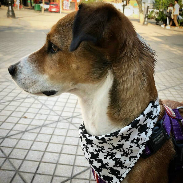 Todo partió en 2018, cuando decidí ir a la feria de mi barrio y comprar unas prendas de ropa usada para re-utilizar la tela y coserle una bandana a Limón. Desde ese día nunca más dejé de hacerlo. Monté un taller en mi casa y comencé a fabricar las bandanas con más estilo de Santiago para mascotas de todas las tallas.